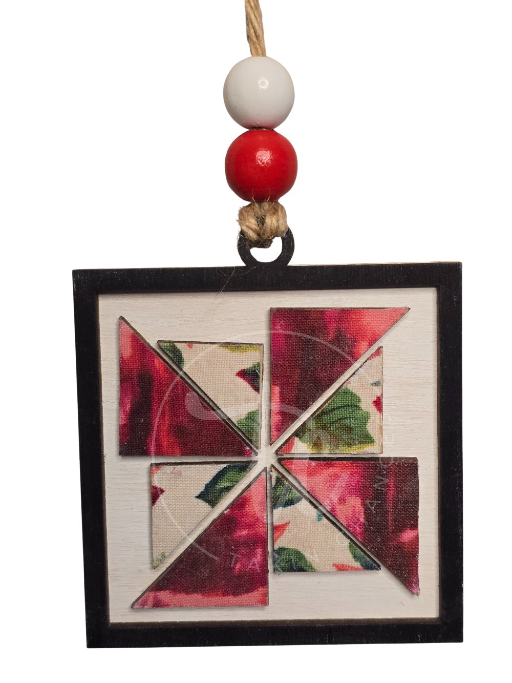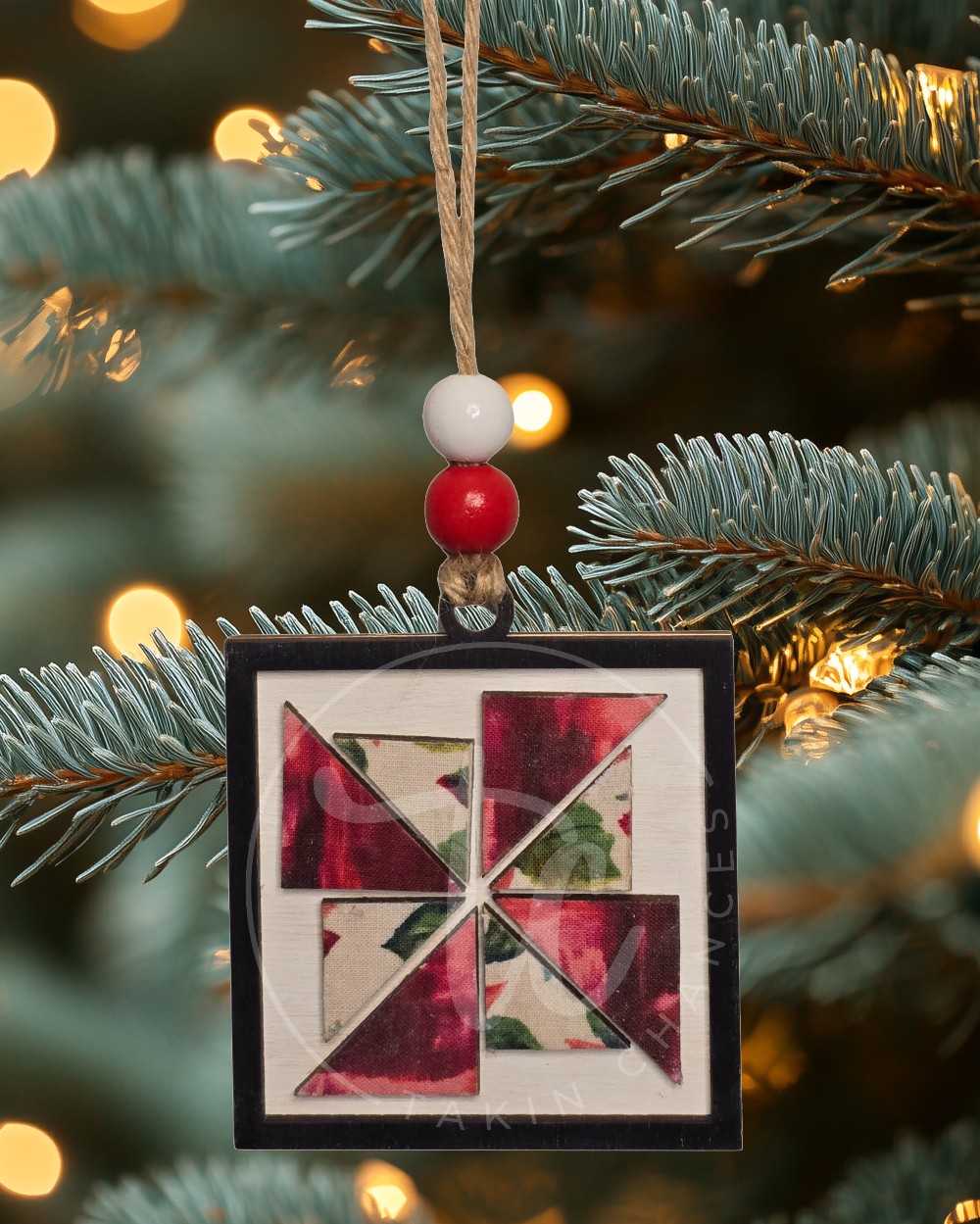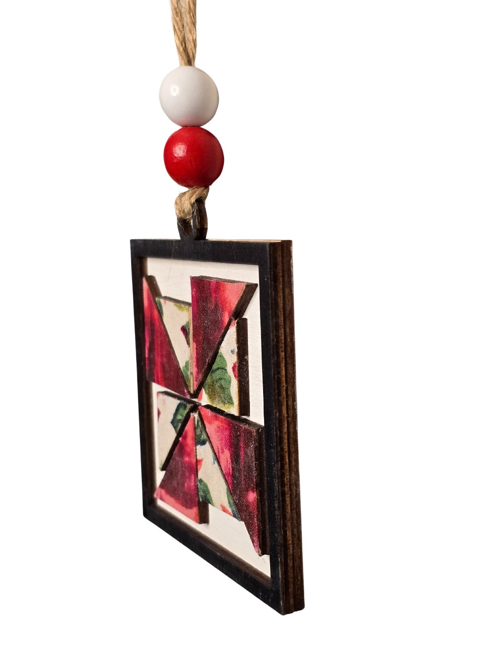 This beautiful windmill Christmas quilt block ornament will look darling on your tree. Or give as a gift to your favorite quilter. Who wouldn’t love a little extra holiday cheer? Ornaments are cut from high-quality 1/8" Baltic Birch. They are hand-painted with acrylic paints and/or stains or covered in high quality fabrics and papers. The ornaments have multiple layers for a great 3D look. Fully handmade. The finished piece might vary slightly from the photos, but the same color scheme will be used. Also, the bows or beads on the ornament may be different from those in the photo, but they will still be a Christmas design. Ornament diameter is approx. 3" x 3"