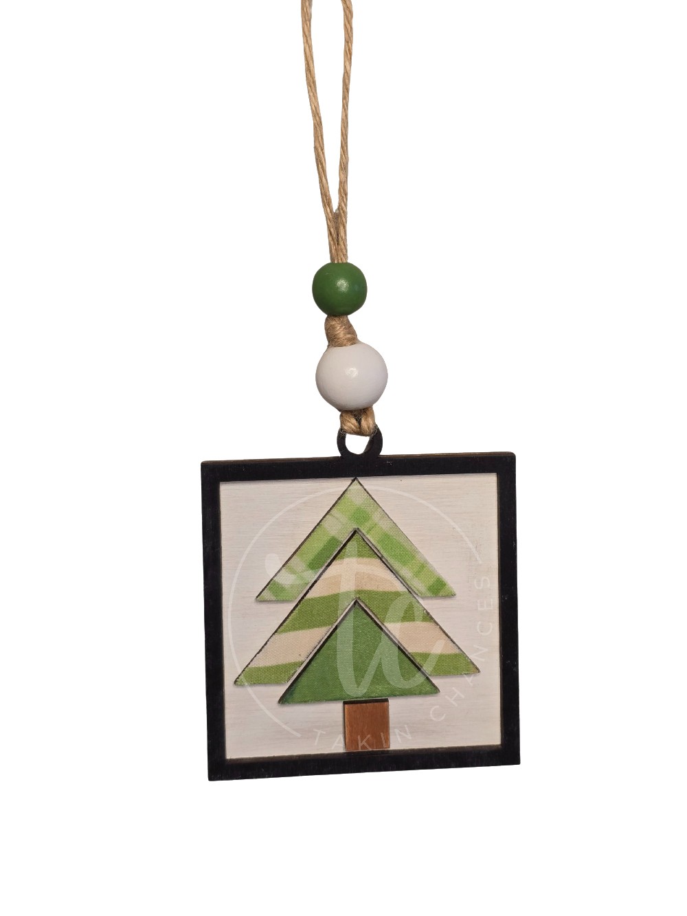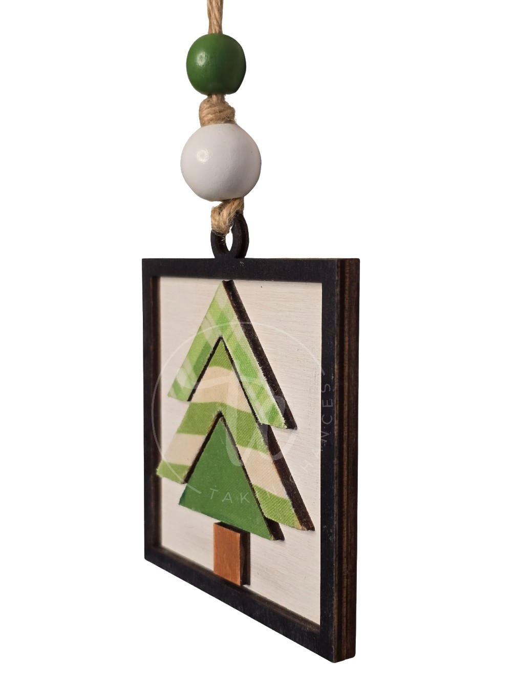 This beautiful Christmas tree quilt block ornament will look darling on your tree. Or give as a gift to your favorite quilter. Who wouldn’t love a little extra holiday cheer? Ornaments are cut from high-quality 1/8" Baltic Birch. They are hand-painted with acrylic paints and/or stains or covered in high quality fabrics and papers. The ornaments have multiple layers for a great 3D look. Fully handmade. The finished piece might vary slightly from the photos, but the same color scheme will be used. Also, the bows or beads on the ornament may be different from those in the photo, but they will still be a Christmas design. Ornament diameter is approx. 3" x 3"