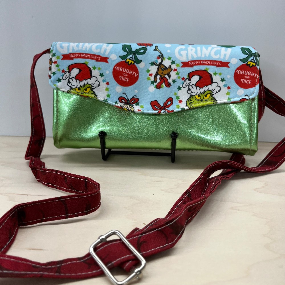 Crossbody wallet, card slots, currency/coupon pockets, wider pocket fits some phones and your keys. Cotton/vinyl exterior.