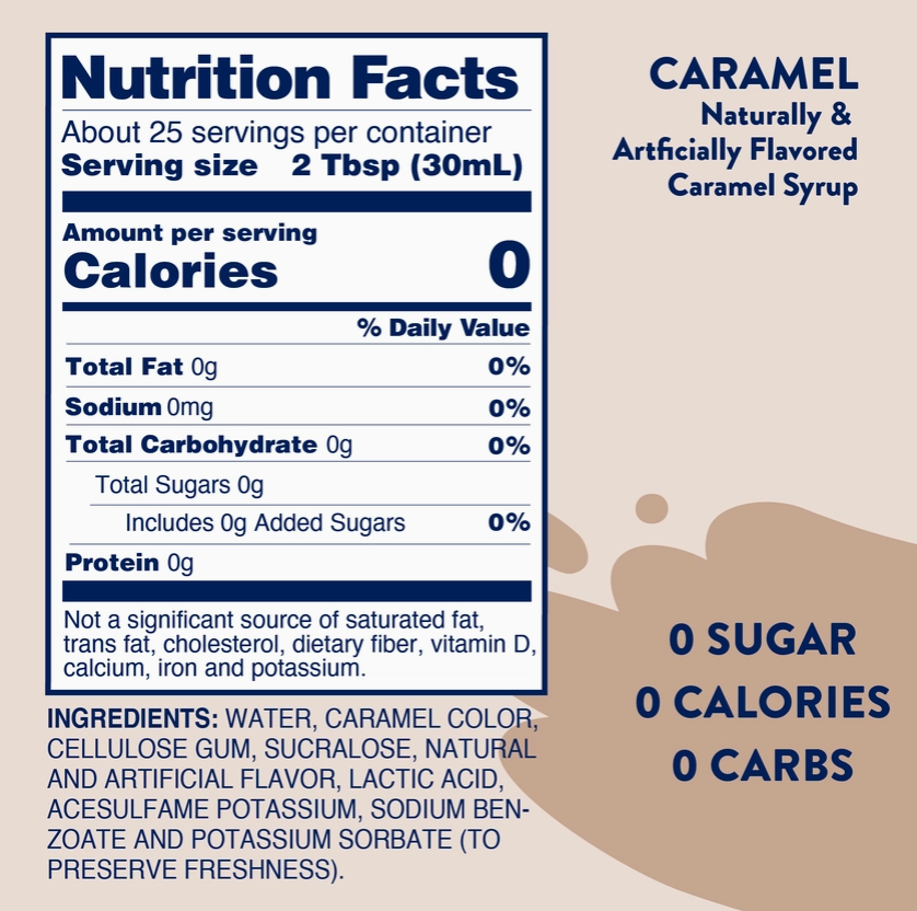 This rich, creamy, and buttery caramel flavor is the perfect way to make your favorite beverages taste indulgent, but without the unwanted calories. Add guilt-free flavor to coffees, lattes, tea, protein shakes, smoothies, baking, oatmeal, or just about anything. π« 0 Calories. 0 Sugar. 0 Carbs. π° 750 ml/25.4 fl. oz. Bottle - 25 Servings! β Gluten-Free & Kosher. π± Keto-Friendly. πΊπΈ Made in the USA.