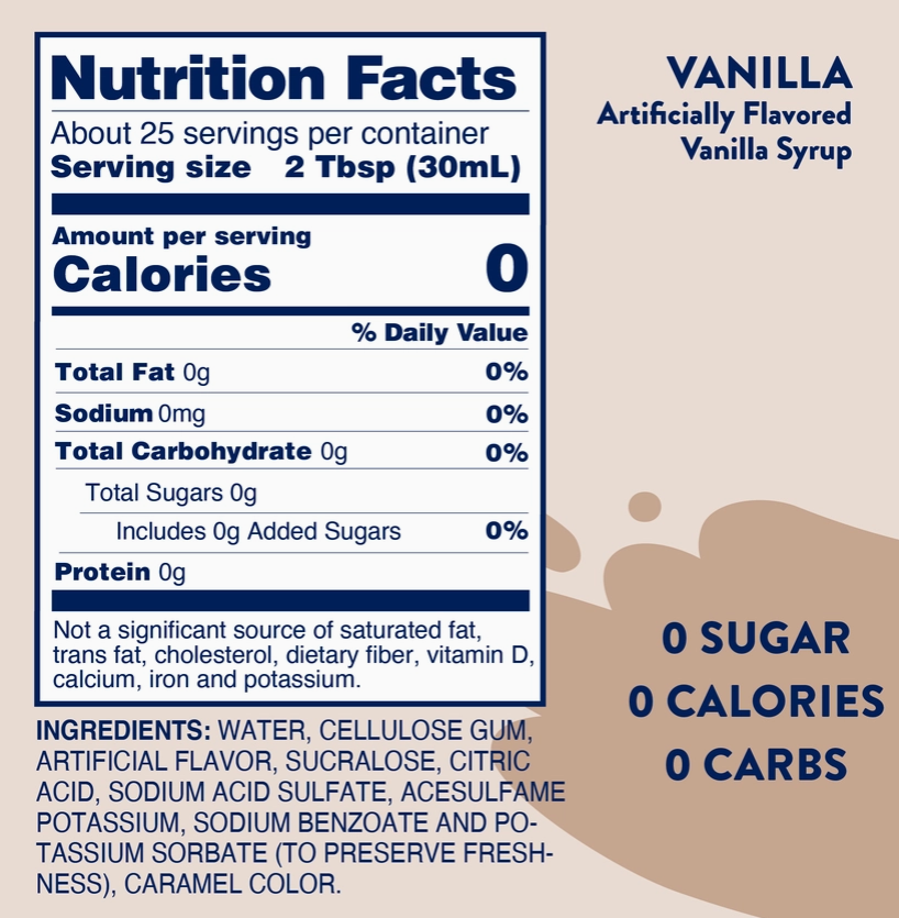 This top-selling, classic flavor is the perfect way to make your favorite beverages taste indulgent, but without the unwanted calories. Flavor Notes: Rich, smooth, and creamy flavor with sweet, buttery vanilla aroma. Add guilt-free flavor to coffees, lattes, tea, protein shakes, smoothies, baking, oatmeal, yogurt, overnight oats, or just about anything. π« 0 Calories. 0 Sugar. 0 Carbs. π° 750 ml/25.4 fl. oz. Bottle - 25 Servings! β Gluten-Free & Kosher. π± Keto-Friendly. πΊπΈ Made in the USA.