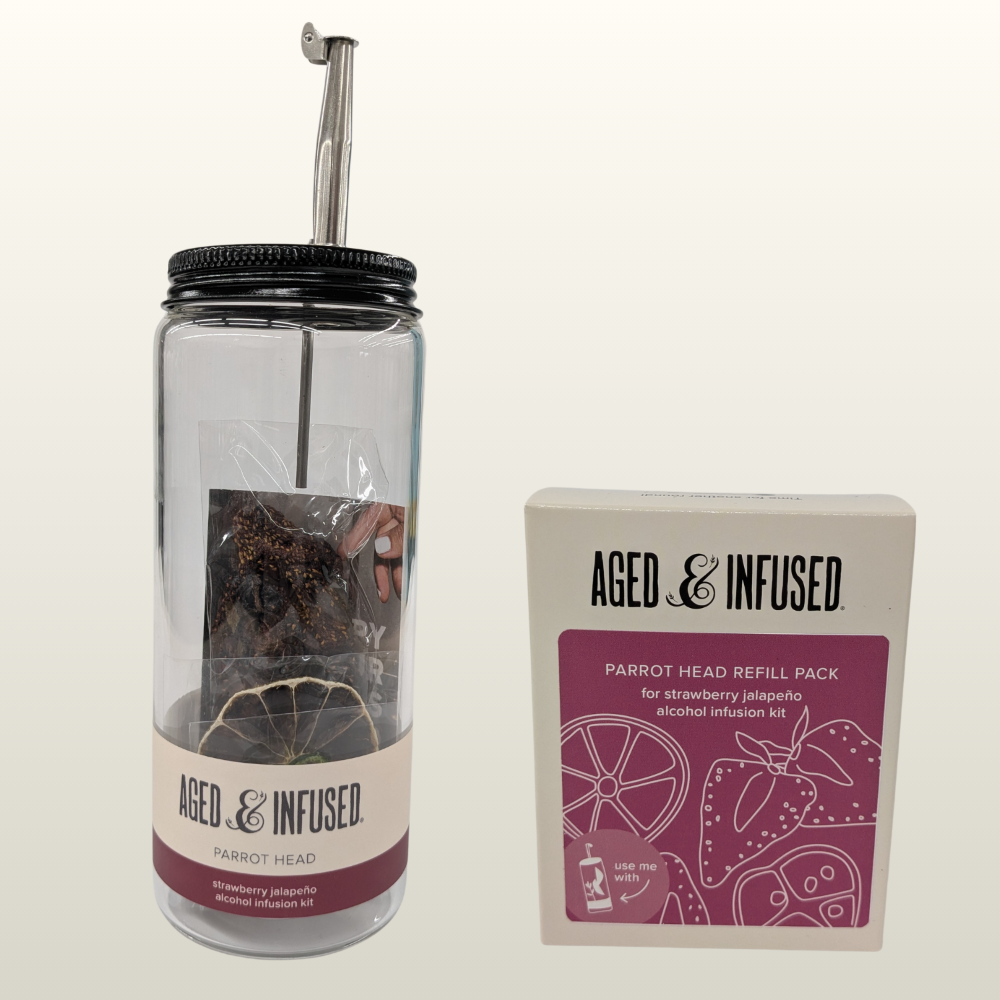 Our all-natural ingredient refill packs are designed to pour right back into a signature Aged & Infused kit. Add your booze, wait three days, enjoy a whole new kind of drink! Ingredients: Dehydrated strawberry, dehydrated jalapeƱo, dehydrated lime Recommended Spirits: Tequila, Rum, Vodka Packaged in a facility that handles tree nuts, dairy products and soy.