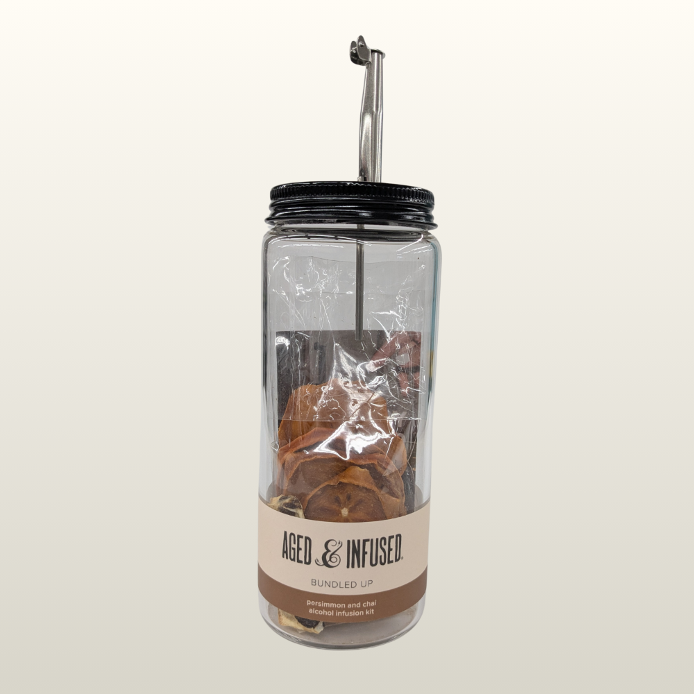 Grab your chunky sweater—it’s time to curl up by a frosted window and get lost in your favorite book. This indulgent infusion warms you from the inside out. Get ready to sip light notes of peppery chai, bright lemon, and the big kahuna—pumpkiny, rich, and seasonal persimmon. Meet your new go-to autumn bev designed to take cozy to a whole new level. Recommended Spirits: Whiskey, Vodka, Spiced Rum Our DIY cocktail infusion kits include a 16 oz glass jar, custom filtering pour spout, pre-measured ingredients and an instructional booklet with our favorite cocktail recipes. Simply empty all ingredients into the jar, fill with ~16oz of liquor, seal tightly and let infuse for at least 3 days! Each kit will provide 7-8 cocktails and should be enjoyed within 30 days. Shelf life is 18 months and all kits are marked with a “best by” sticker. Packaged in a facility that handles tree nuts, dairy products and soy.