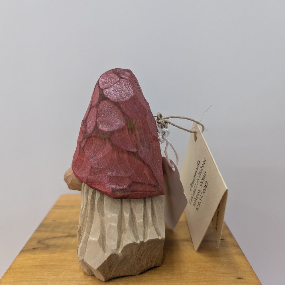 (Dimensions: 4" H x 2.25" W x 2" D) Hand-Carved Gnome with red hat (2D) Handcrafted from wood using chisels and knives, then carefully hand-painted and finished. This piece is made from basswood. Since each piece is handmade, no two pieces are ever the same. Each has its own unique personality. This item is individually numbered and signed, making it ideal for gift-giving, or for starting your own holiday tradition that you can enjoy for many years to come. ALL SALES ARE FINAL.
