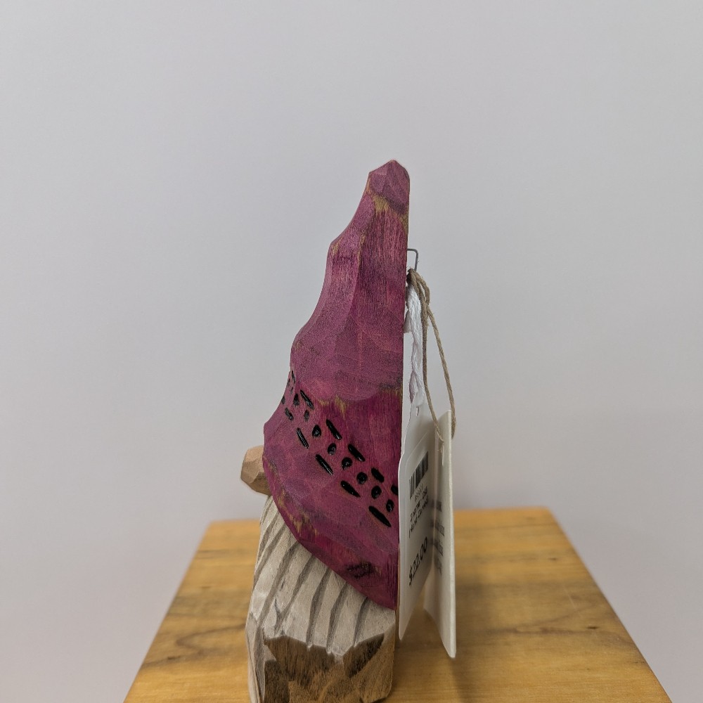 (Dimensions: 5" H x 2.25" W x 1.5" D) Hand-Carved Gnome with rouge hat (2D) Handcrafted from wood using chisels and knives, then carefully hand-painted and finished. This piece is made from basswood. Since each piece is handmade, no two pieces are ever the same. Each has its own unique personality. This item is individually numbered and signed, making it ideal for gift-giving, or for starting your own holiday tradition that you can enjoy for many years to come. ALL SALES ARE FINAL.